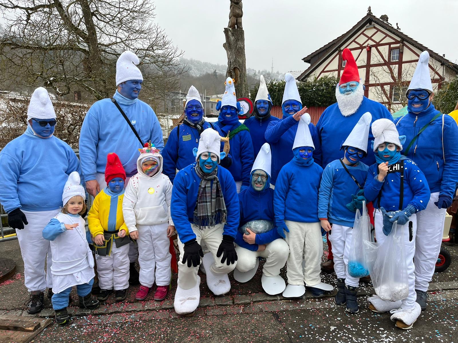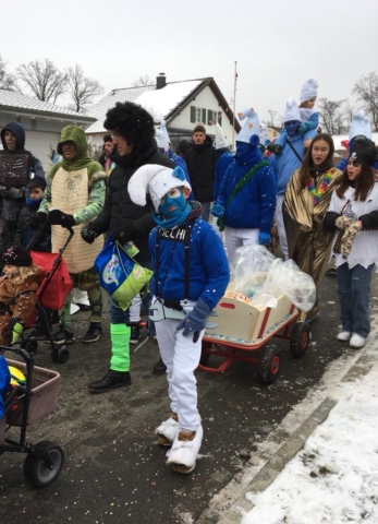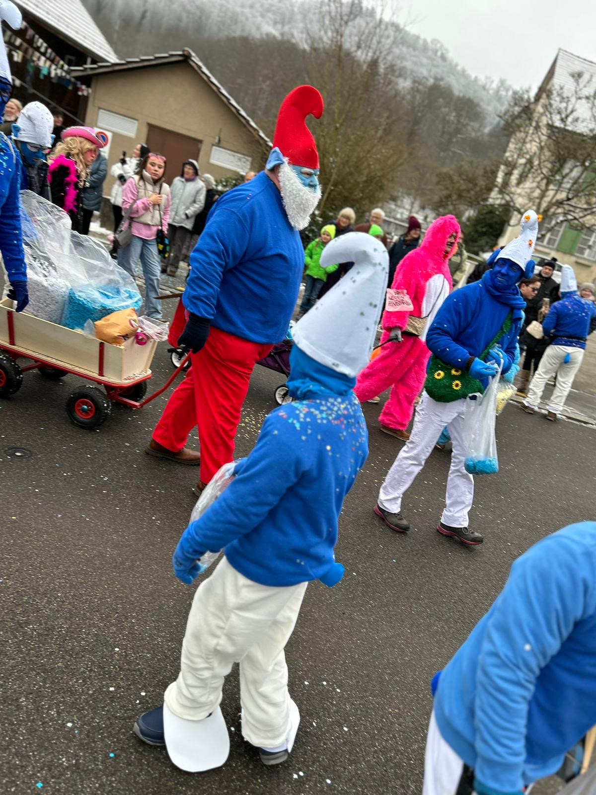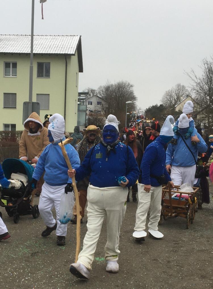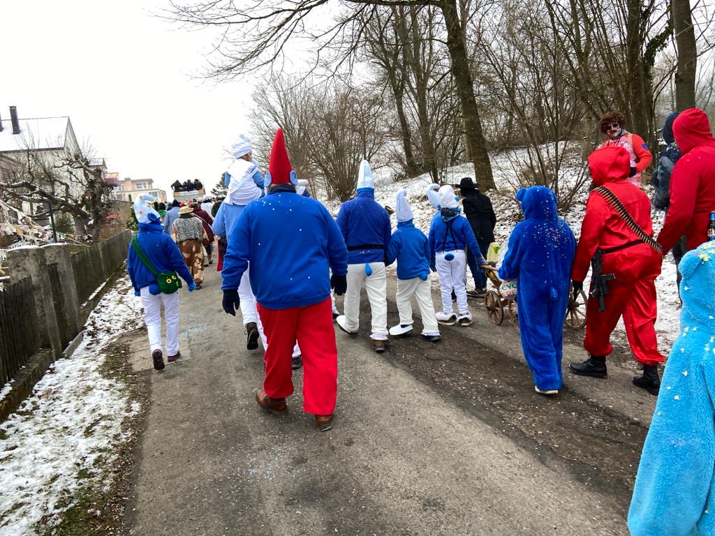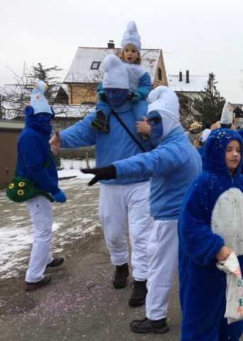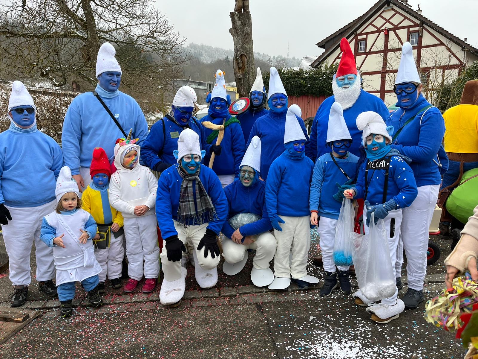 Auch dieses Jahr ist die IG-Hilari wieder unterwegs und zwar als Schlümpfe.