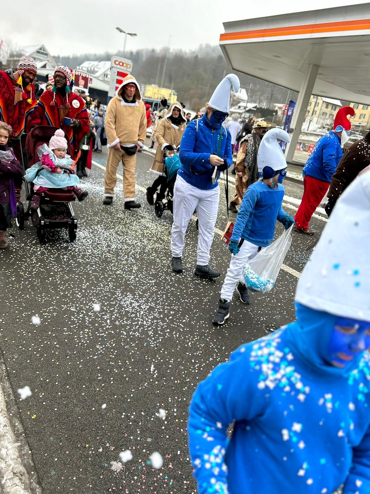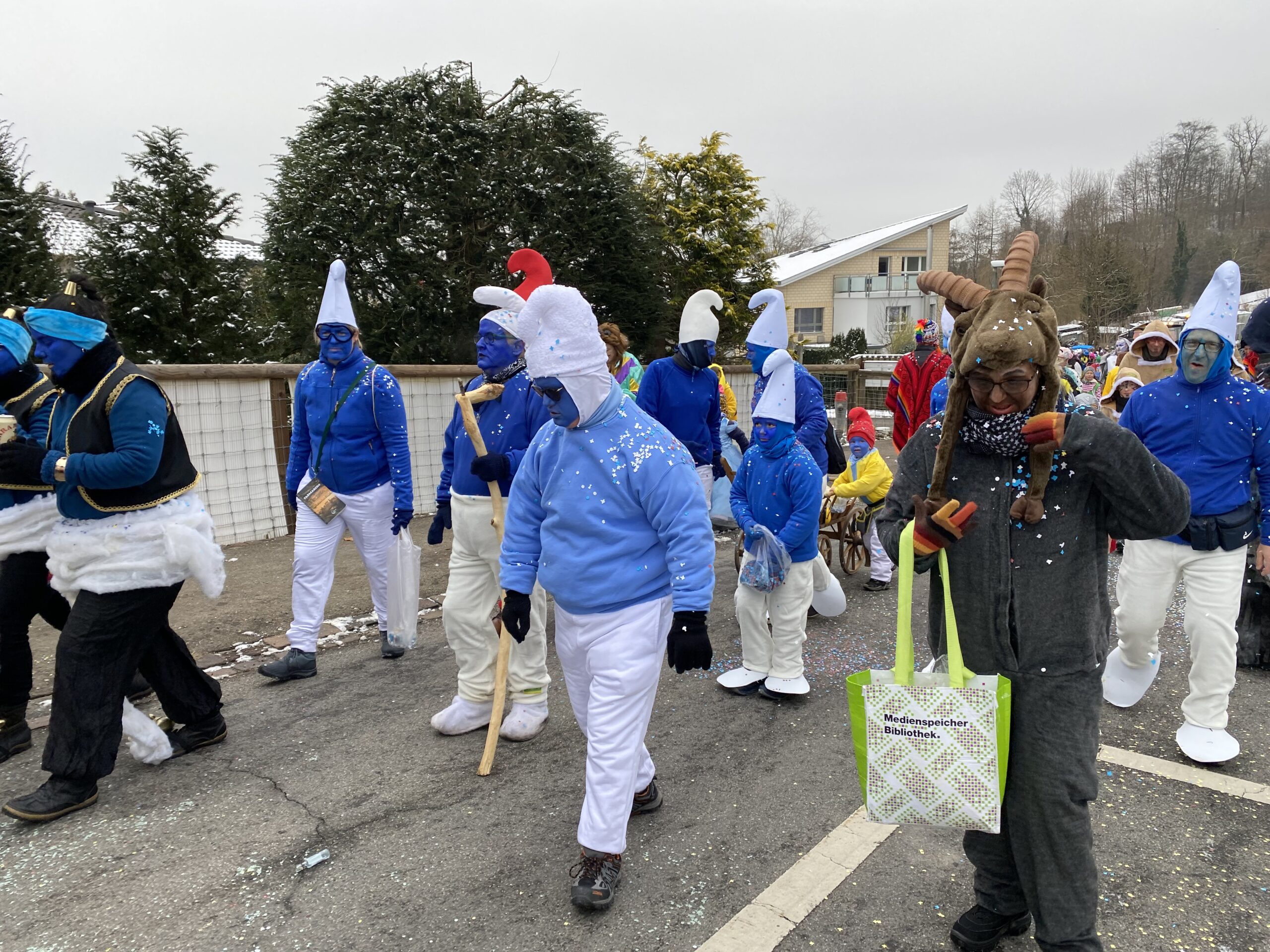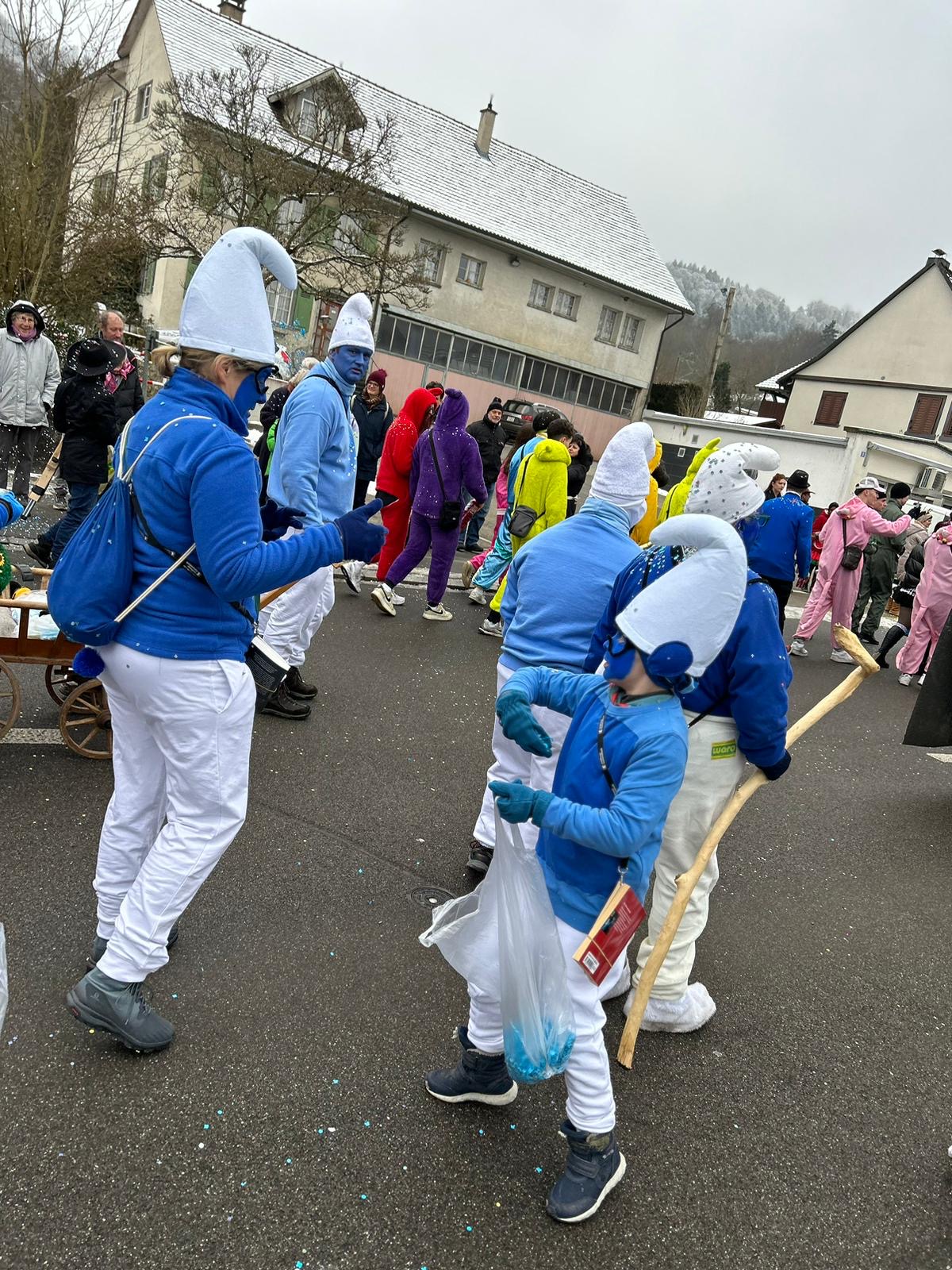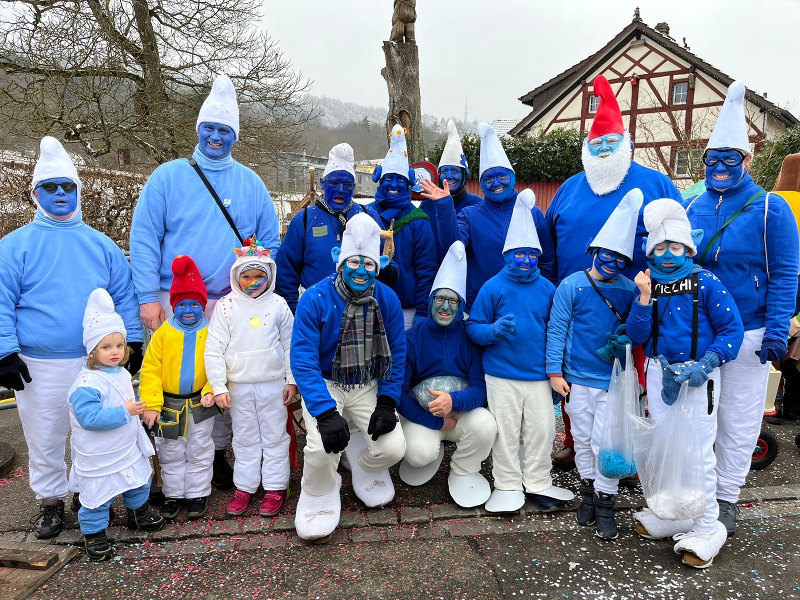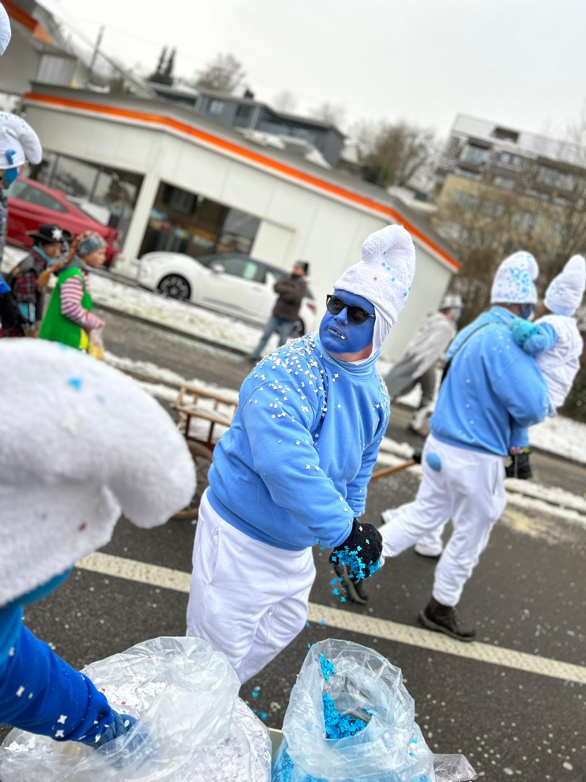 Auch dieses Jahr ist die IG-Hilari wieder unterwegs und zwar als Schlümpfe.